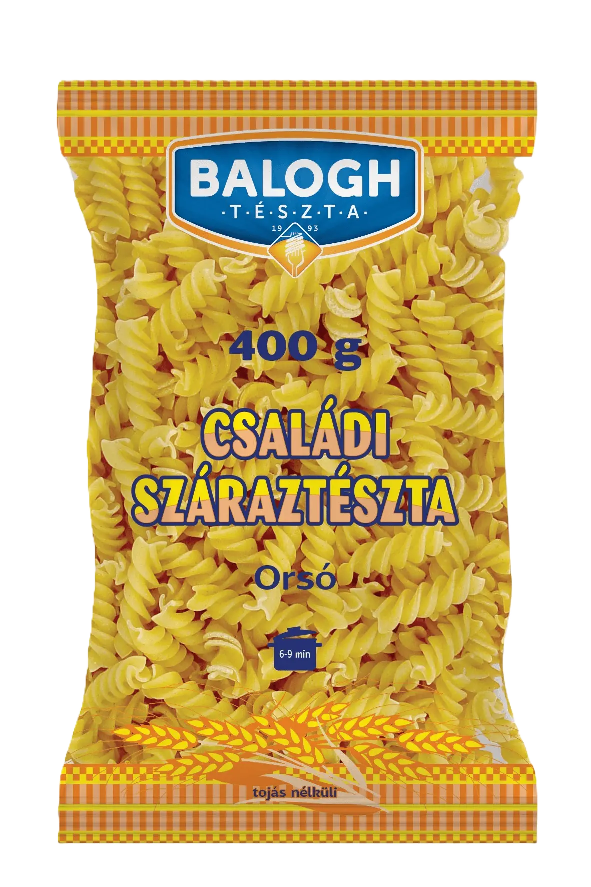 Balogh Családi száraztészta 400 g Tojás nélküli termékek